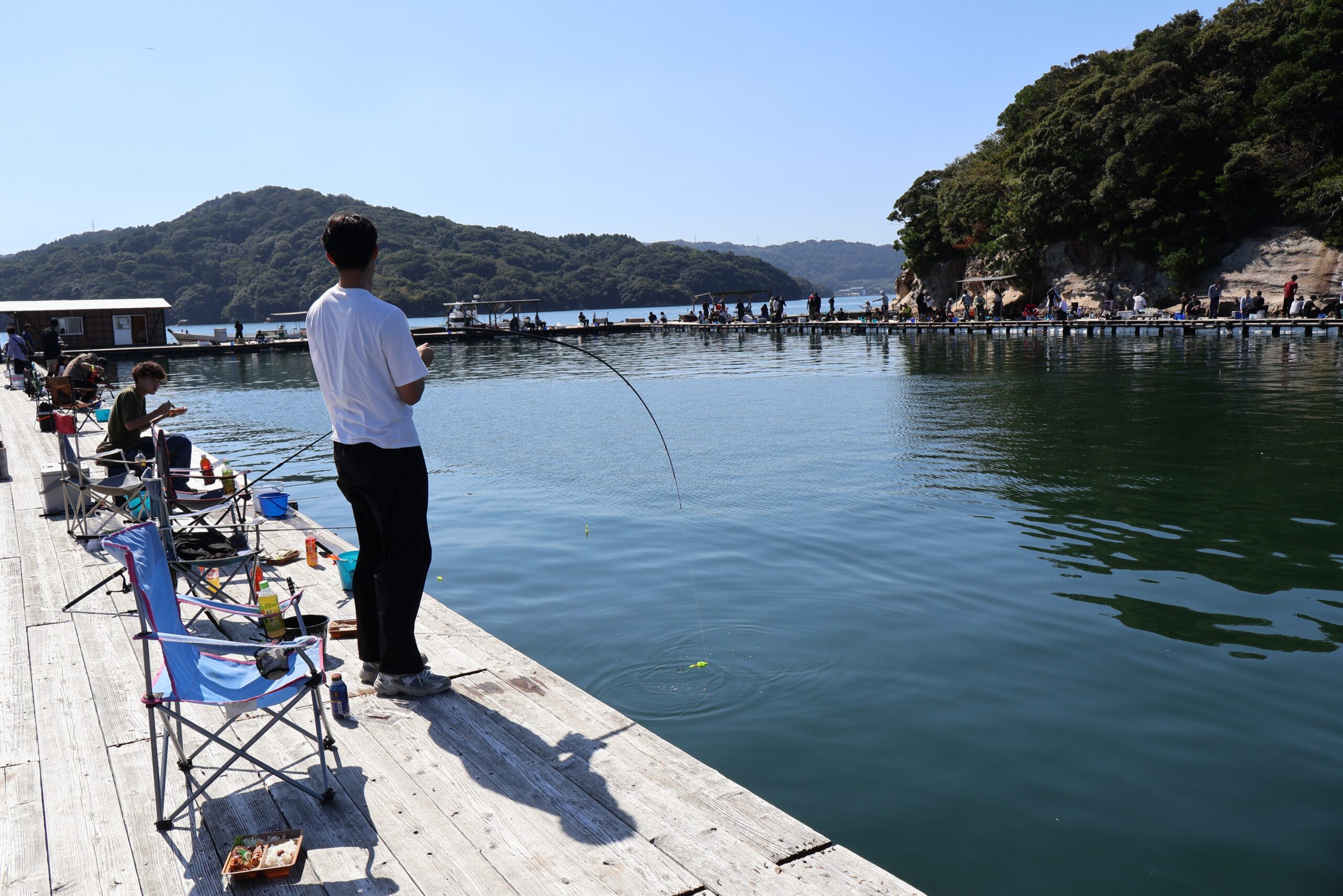 2025.10.14 ニシハツブログ ニシハツ 釣り大会 10月11日にニシハツ 釣り大会を行いました。 天候に恵まれた中、大人数での開催となりました。 釣り堀内には鯛やハマチ、ヒラマサといった多くの魚種が放流されており 普段魚釣りをしない方々も、思い思いに楽しまれていました。